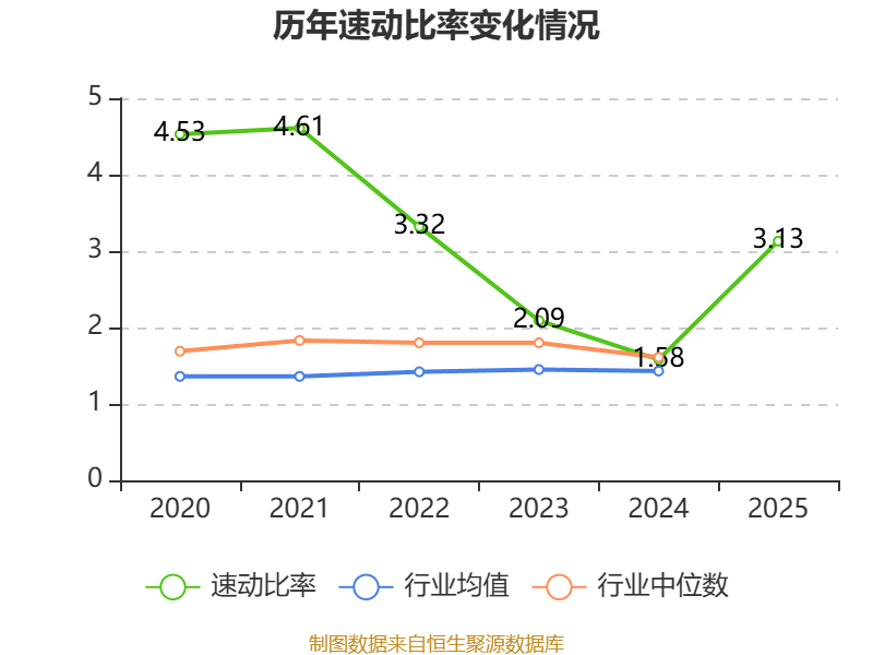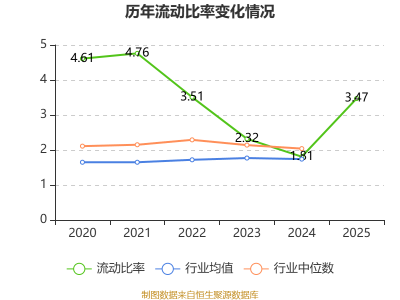 2025年,公司流动比率为3.47,速动比率为3.13。