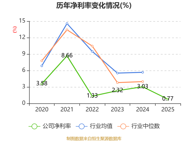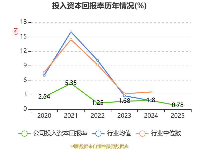 数据显示,2025年公司加权平均净资产收益率为-0.44%,较上年同期下降1.74个百分点。公司2025年投入资本回报率为0.78%,较上年同期下降1.02个百分点。