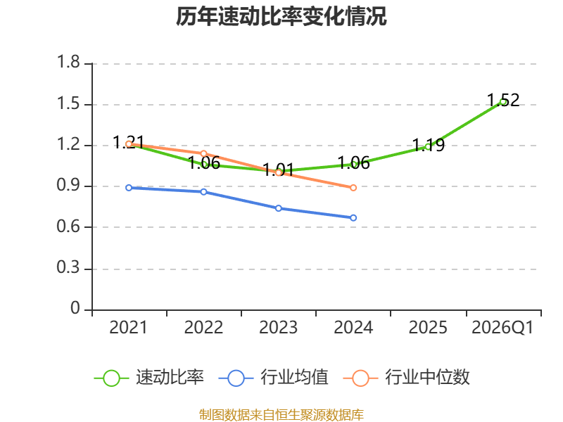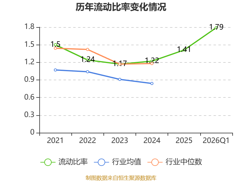 2026年第一季度,公司流动比率为1.79,速动比率为1.52。