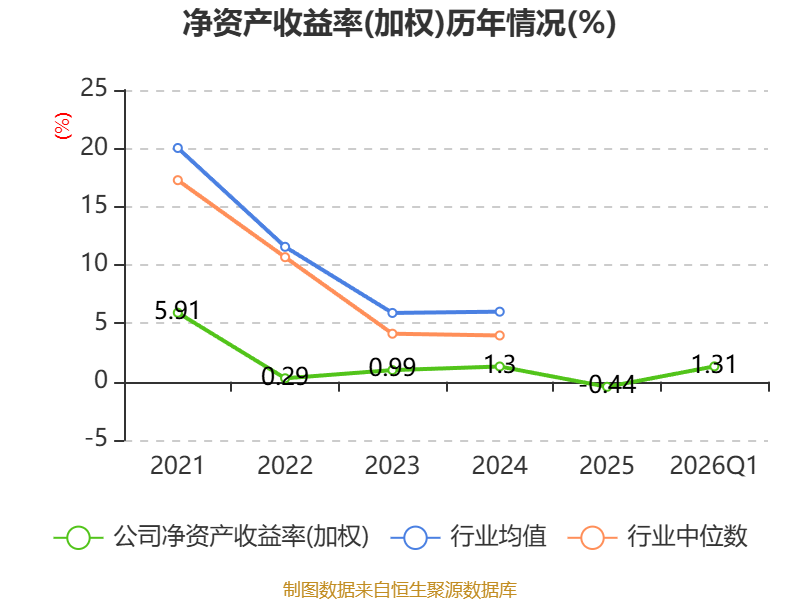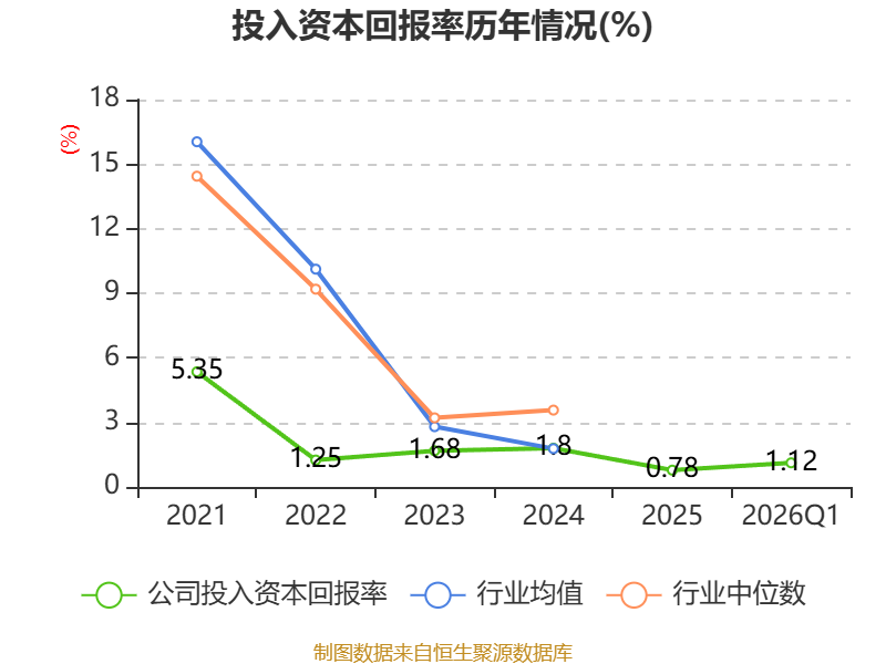 盈利能力方面, 2026年一季度公司加权平均净资产收益率为1.31%,同比上升0.84个百分点。公司2026年第一季度投入资本回报率为1.12%,较上年同期上升0.54个百分点。