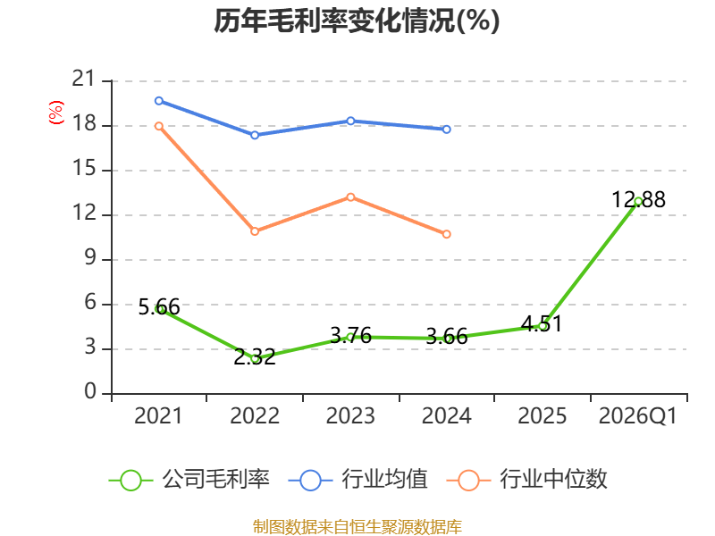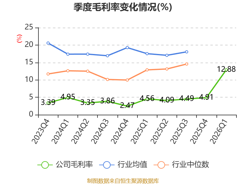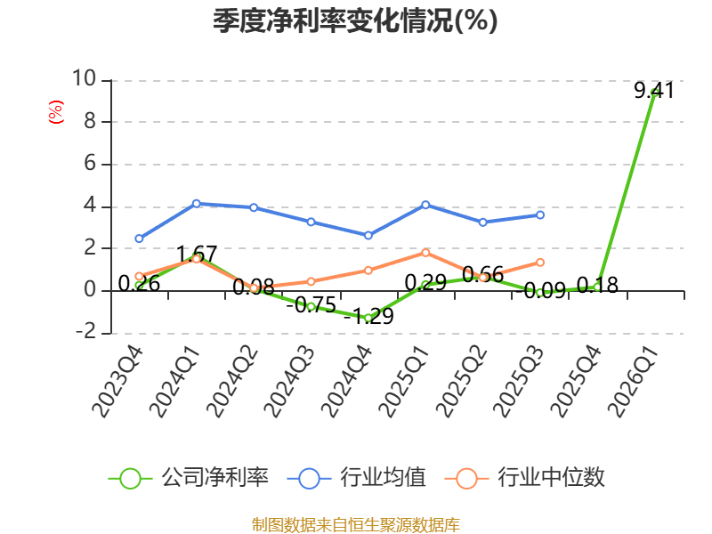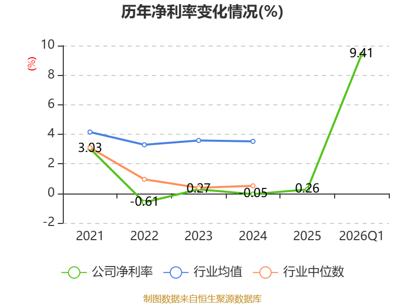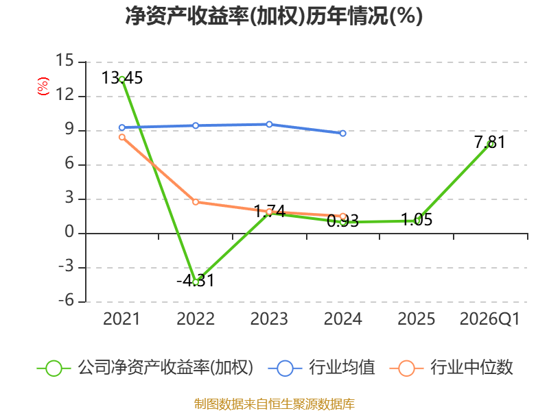 盈利能力方面, 2026年一季度公司加权平均净资产收益率为7.81%,同比上升7.6个百分点。公司2026年第一季度投入资本回报率为3.25%,较上年同期上升2.75个百分点。