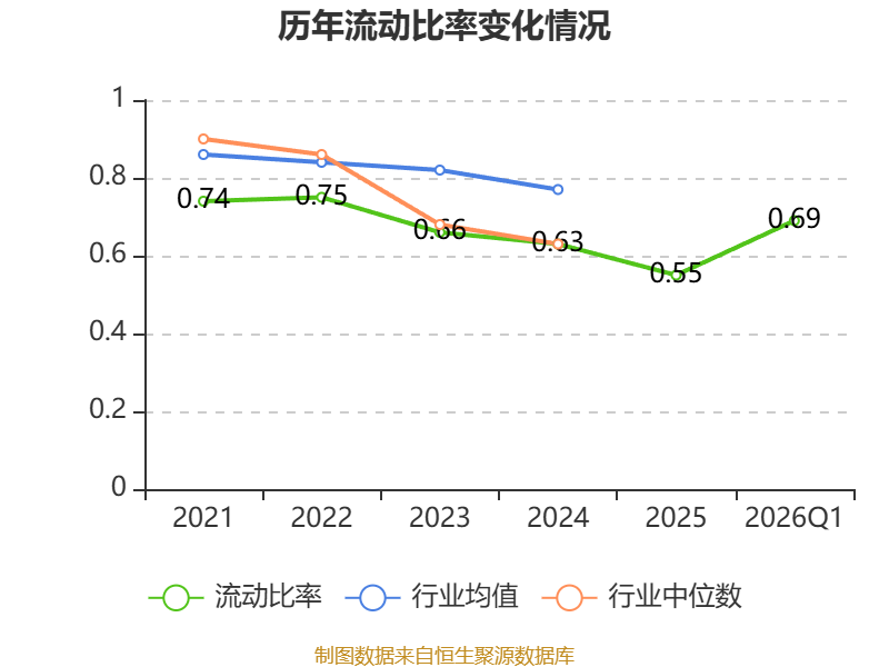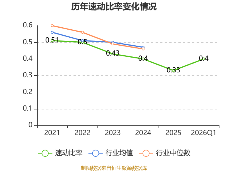 2026年第一季度,公司流动比率为0.69,速动比率为0.4。
