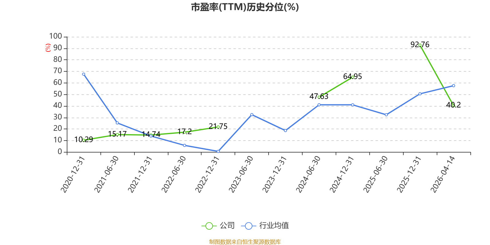 市盈率、市净率为负时,不显示当期分位数,会导致折线图中断。