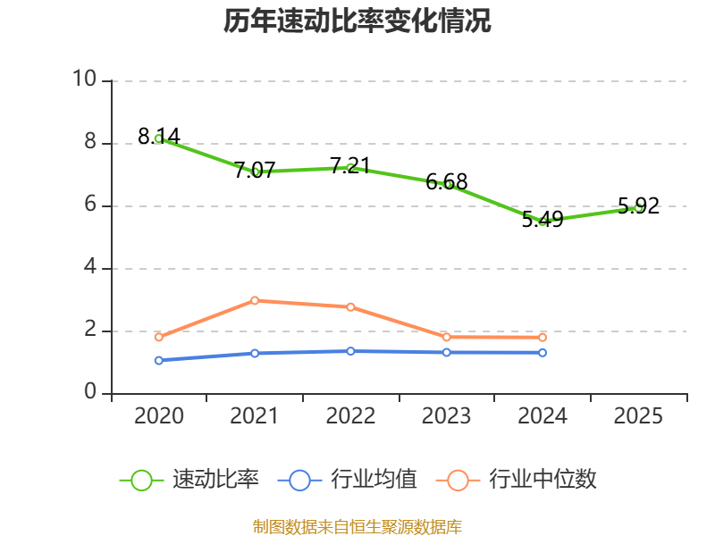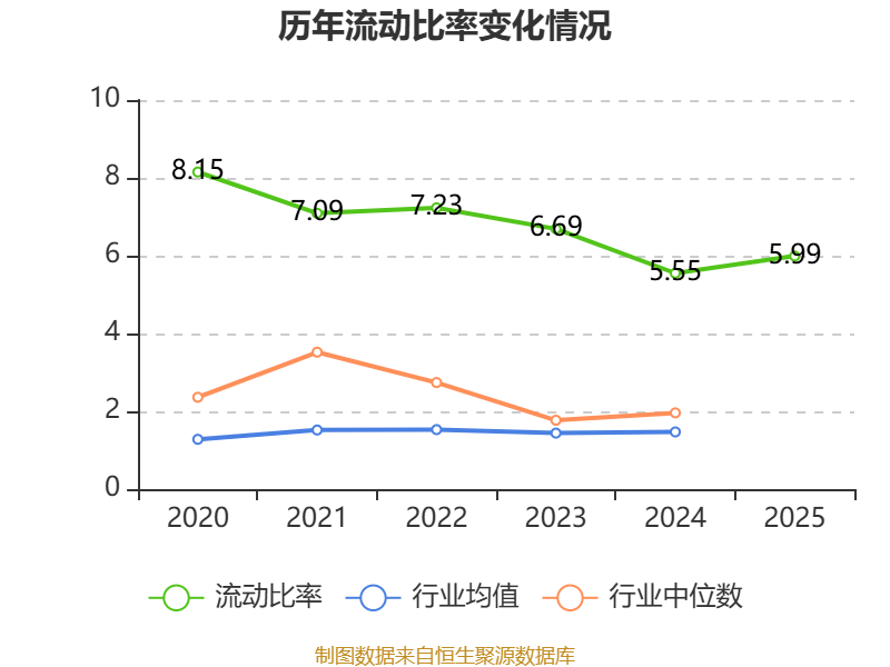 2025年,公司流动比率为5.99,速动比率为5.92。