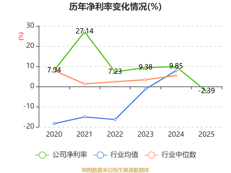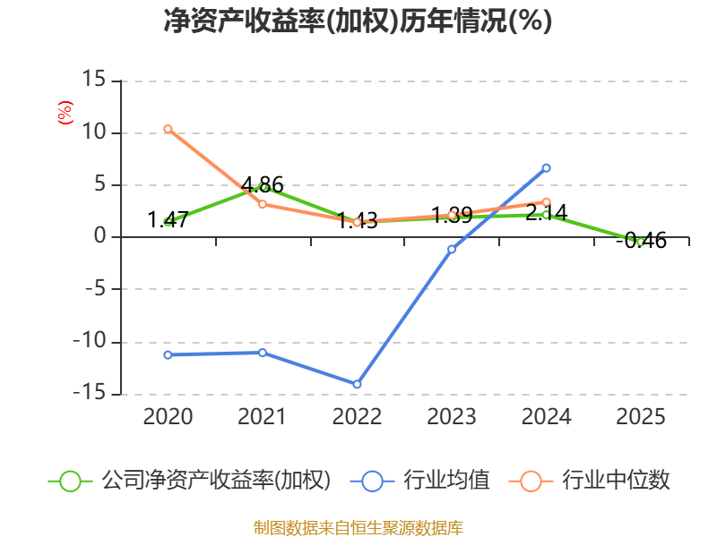 数据显示,2025年公司加权平均净资产收益率为-0.46%,较上年同期下降2.6个百分点。公司2025年投入资本回报率为-0.75%,较上年同期下降2.98个百分点。