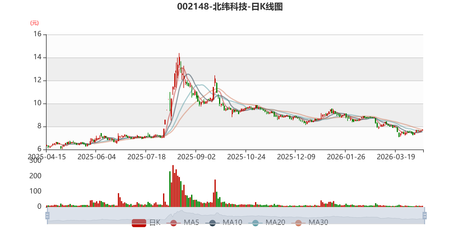 以4月14日收盘价计算,北纬科技目前市盈率(TTM)约为-767.15倍,市净率(LF)约3.54倍,市销率(TTM)约11.27倍。