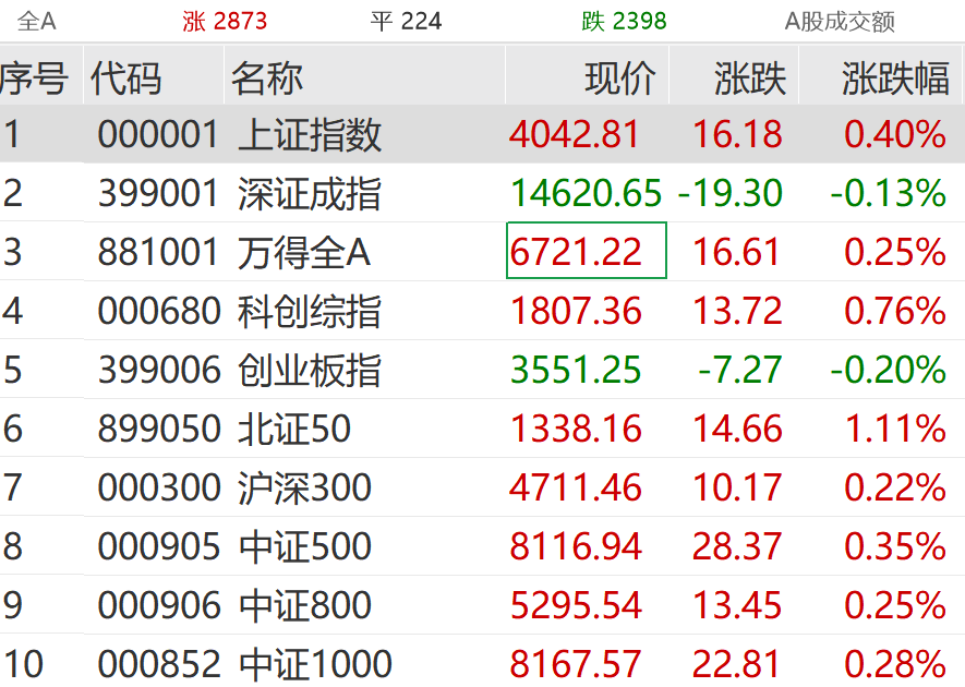 4月15日,A股主要指数早间集体高开。创业板指高开1.06%,创2015年6月19日以来新高。随后,指数走势出现分化,截至发稿,深证成指、创业板指双双翻绿。