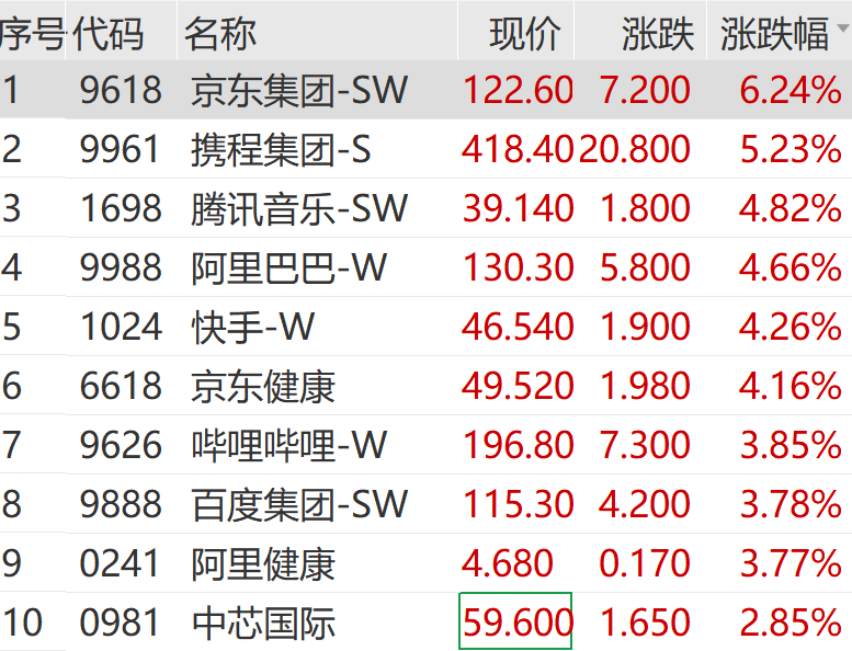 港股市场上午表现活跃,恒生科技指数涨超2%;京东集团涨超6%,领涨恒生科技指数成份股。