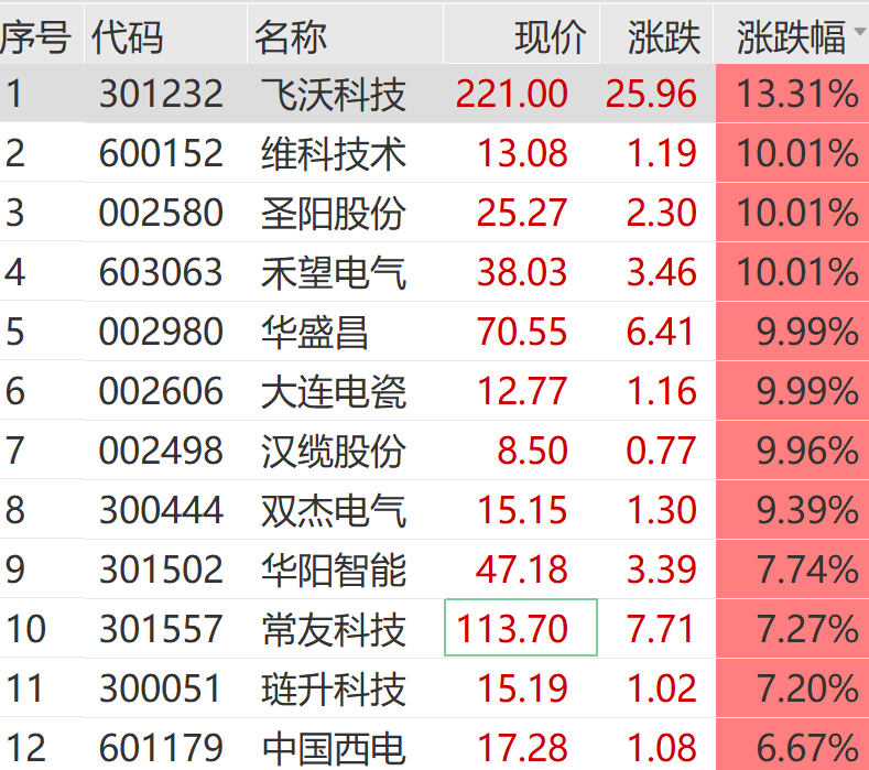 4月15日,A股电力设备板块盘初活跃,电池产业链、智能电网等概念股反复活跃。个股方面,圣阳股份4连板,维科技术、华盛昌走出3连板。