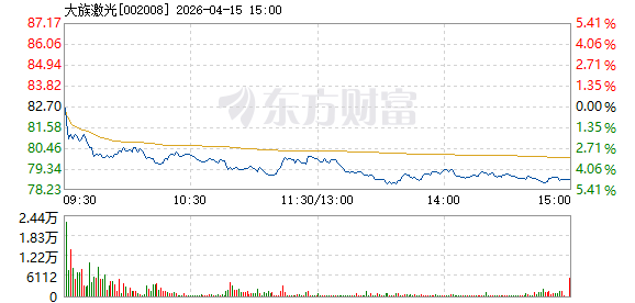 4月15日,大族激光盘中跌幅达5%,截至13点33分,报78.55元,成交32.74亿元,换手率4.27%。