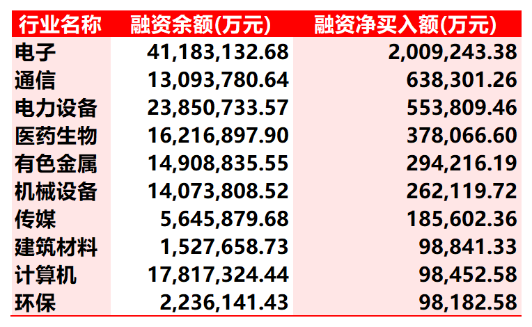 行业方面,据新华财经统计,4月以来31个申万一级行业中,电子、通信、电力设备、医药生物、有色金属等行业融资净买入居前,其中电子行业4月迄今融资净买入额高达200亿元以上,呈现“断层式”领先。