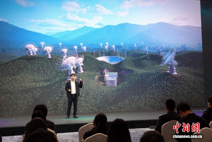 姜鹏科普介绍“中国天眼”。中新网记者孙自法摄