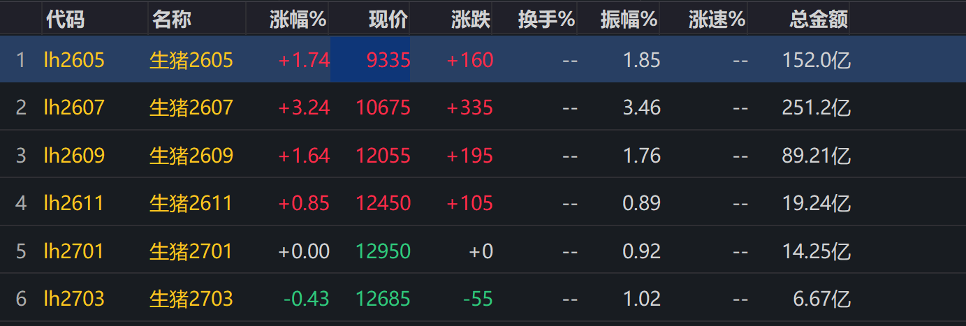 生猪近月期货持续温和反弹。截至4月15日13:37,生猪2605现价9335元/吨,涨幅1.74%;生猪2605至2703呈现升水结构,生猪现价短期反弹持续性待观察,建议关注能繁去化节奏。