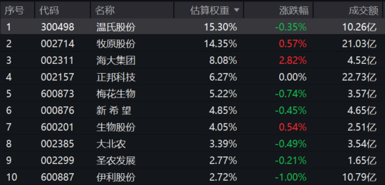 养殖ETF汇添富(159172)标的指数成分股集中度高,囊括各细分领域龙头。截至2026年2月28日,养殖ETF汇添富(159172)标的指数(中证畜牧养殖产业指数(931946))前十大权重股占比合计为66.47%,其中第一、第二大重仓股——牧原股份和温氏股份,合计占比高达28.45%,重仓A股优质“生猪龙头”;此外,指数重仓股还包括饲料加工龙头海大集团(占比9.04%)、大北农(3.34%),以及乳制品龙头伊利股份(2.70%)。