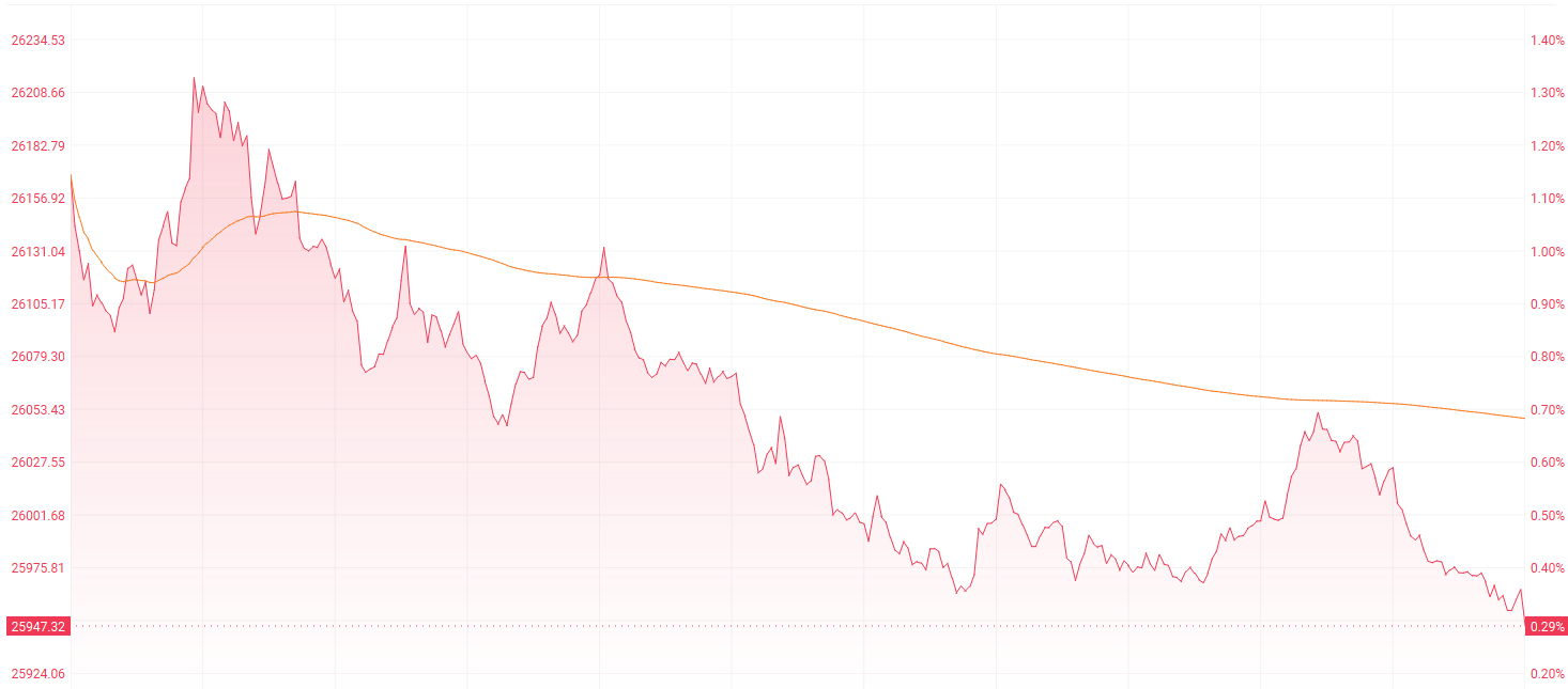 具体来看,以恒生指数为例,该指数在早盘一度升至26200点上方,随后涨幅收窄。同期科技指数也出现类似的表现。