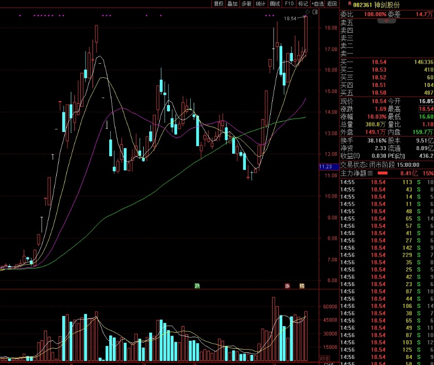 人民财讯4月15日电,商业航天概念股神剑股份4月15日涨停,股价创历史新高,全天成交金额54.6亿元。盘后数据显示,活跃游资银河证券大连黄河路证券营业部买入9382万元,卖出60万元。该营业部此前买卖商业航天概念股引发关注,其上一次现身龙虎榜为今年2月3日现身航天发展。另外,活跃游资国泰海通证券北京知春路证券营业部、国泰海通证券武汉紫阳东路证券营业部分别买入1.51亿元、6972万元神剑股份。