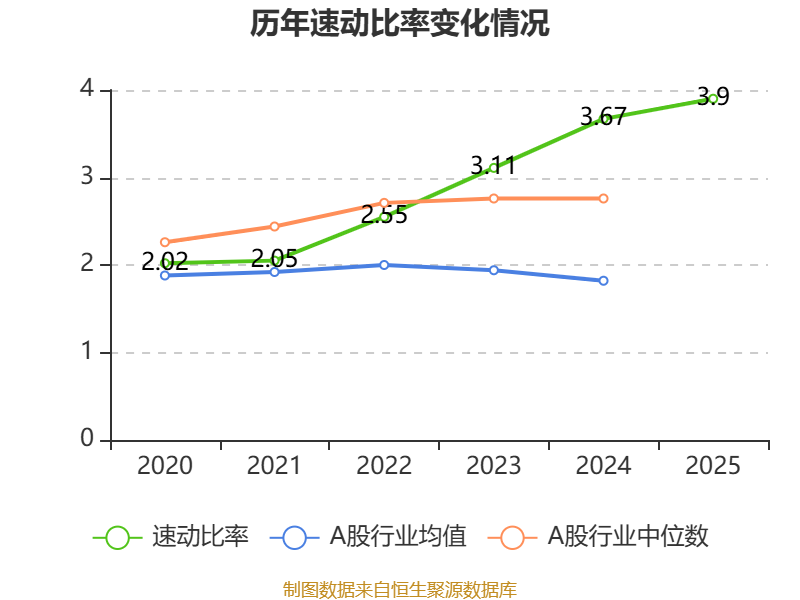 2025年,公司流动比率为4.12,速动比率为3.9。