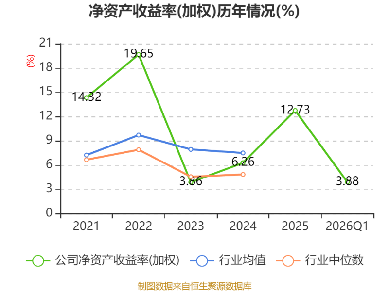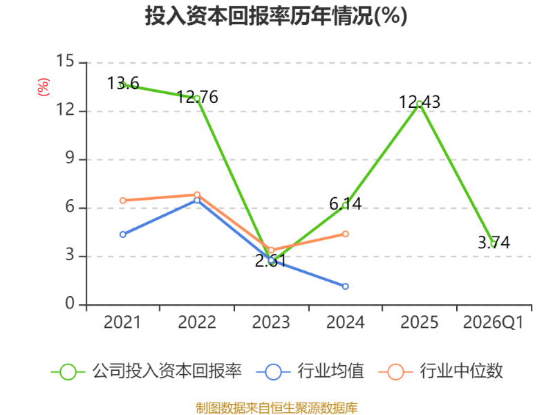 盈利能力方面, 2026年一季度公司加权平均净资产收益率为3.88%,同比上升1.04个百分点。公司2026年第一季度投入资本回报率为3.74%,较上年同期上升0.91个百分点。