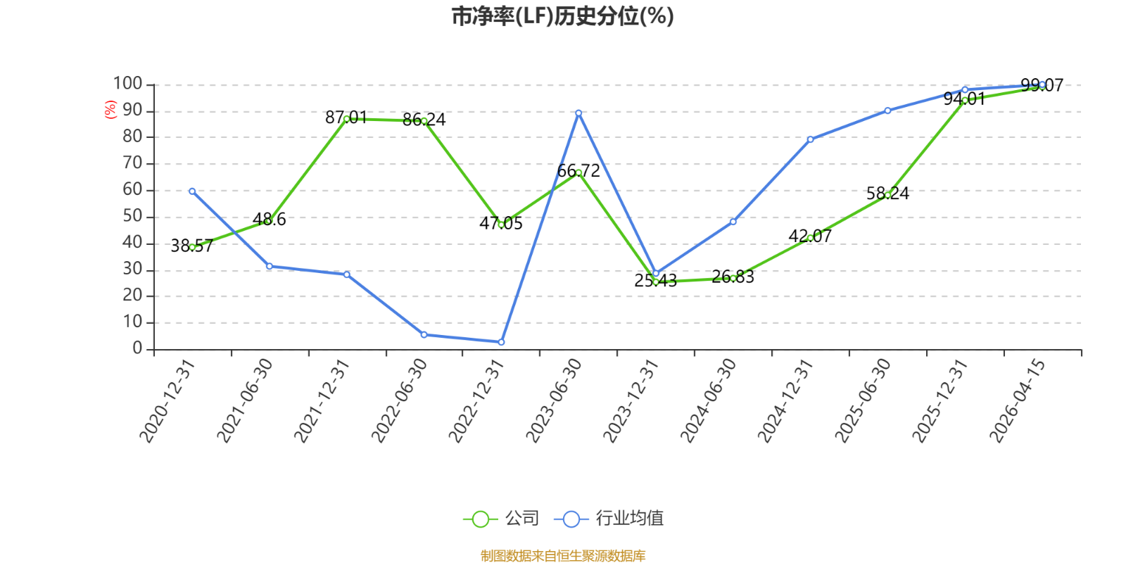 市盈率、市净率为负时,不显示当期分位数,会导致折线图中断。