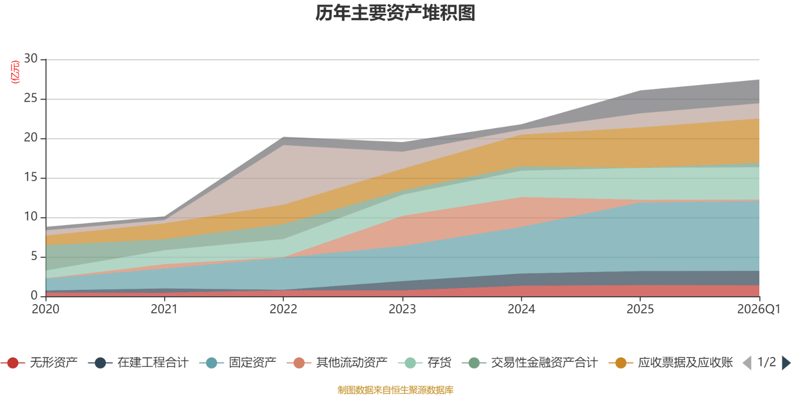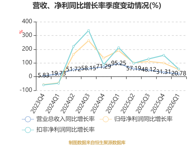 资产重大变化方面,截至2026年一季度末,公司交易性金融资产合计占公司总资产的2.02%,上年末为0;固定资产较上年末增加1.98%,占公司总资产比重下降1.04个百分点;应收款项融资较上年末减少32.62%,占公司总资产比重下降0.99个百分点;应收票据及应收账款较上年末增加9.75%,占公司总资产比重上升0.83个百分点。