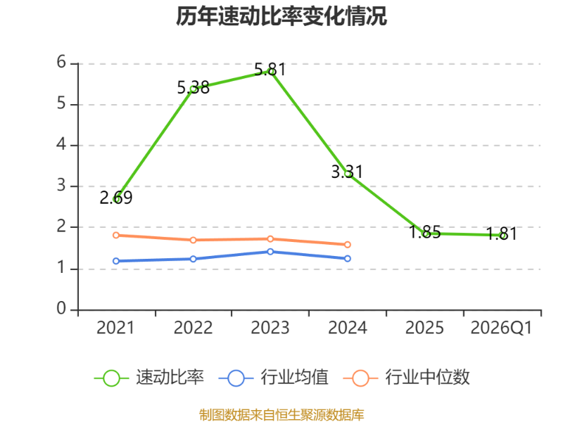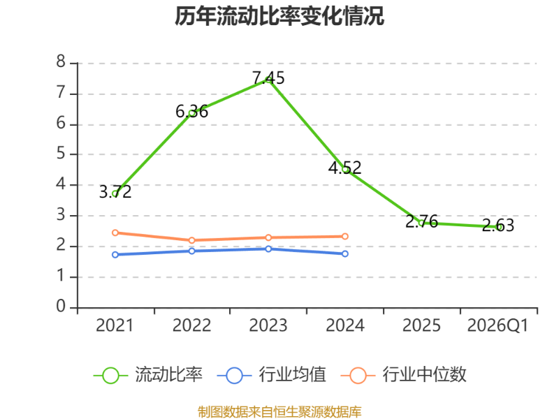 2026年第一季度,公司流动比率为2.63,速动比率为1.81。