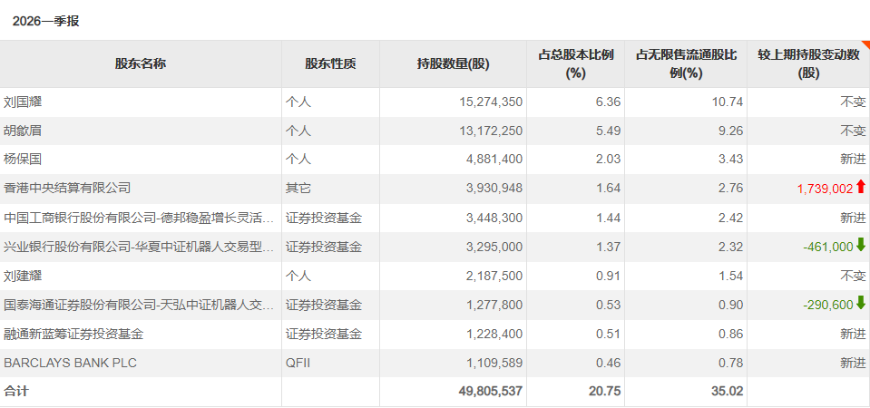 巴克莱银行今年一季度新进科远智慧前十大流通股股东名单,截至一季度末,持股数量为110.96万股。