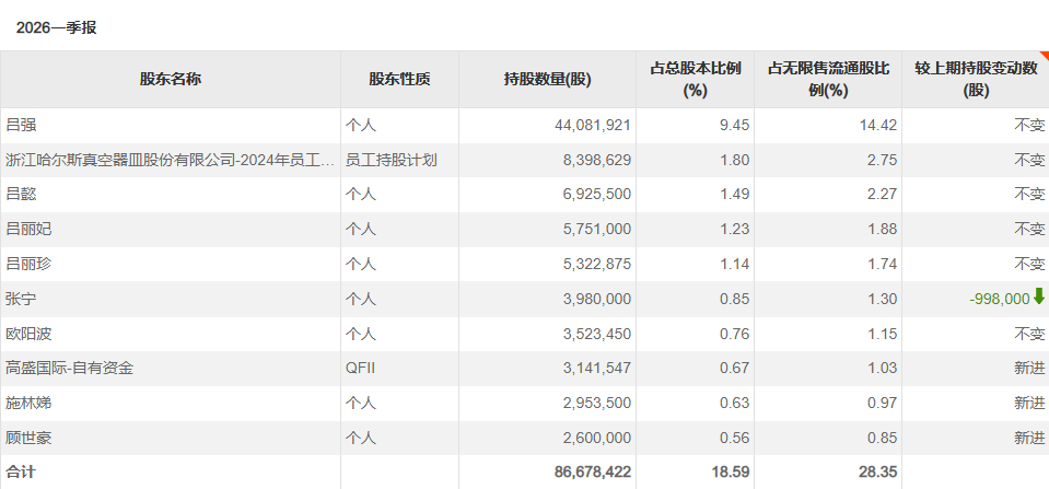 高盛国际一季度新进哈尔斯前十大流通股股东名单,截至一季度末,该机构持有314.15万股哈尔斯,位列第八大流通股股东。