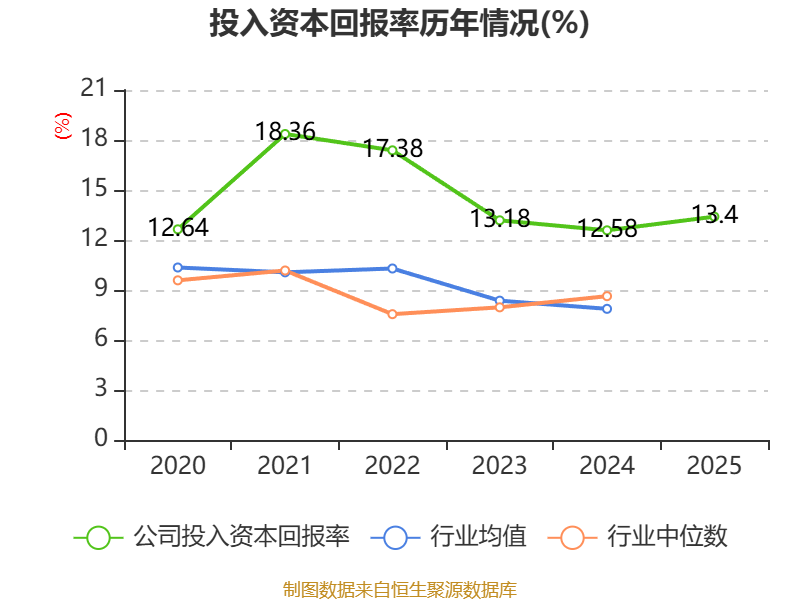 数据显示,2025年公司加权平均净资产收益率为15.33%,较上年同期上升0.58个百分点。公司2025年投入资本回报率为13.4%,较上年同期上升0.82个百分点。