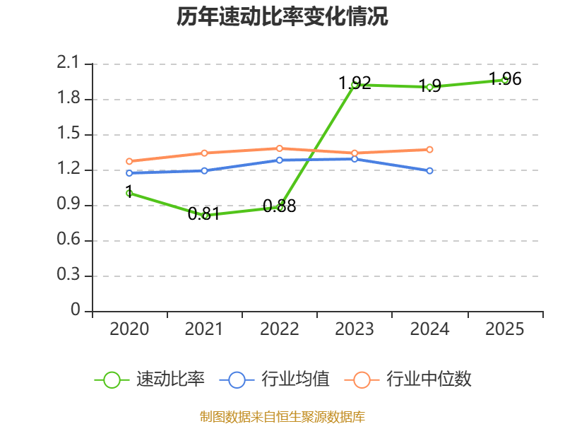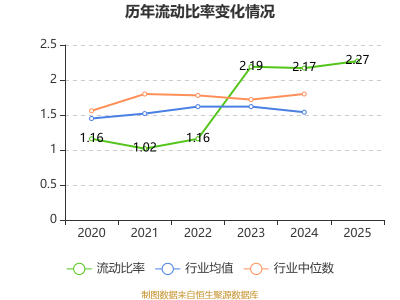 2025年,公司流动比率为2.27,速动比率为1.96。