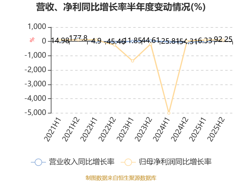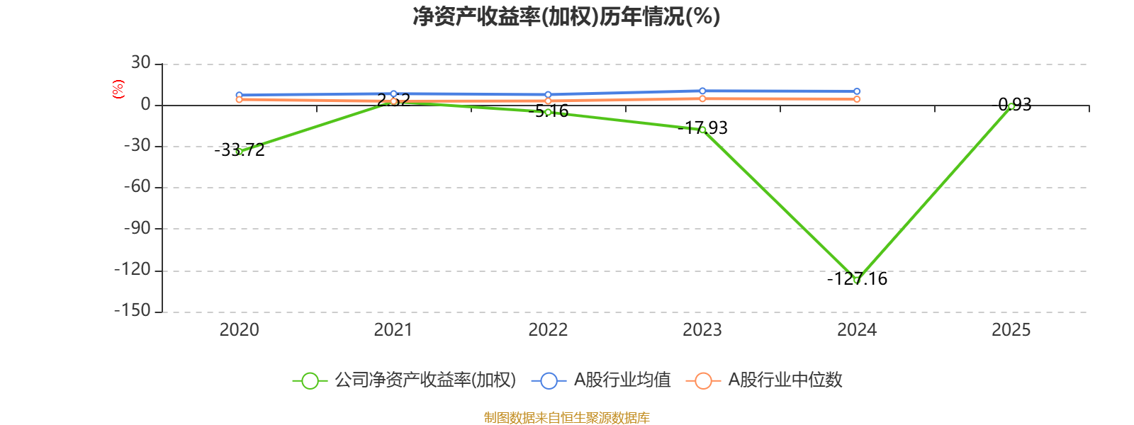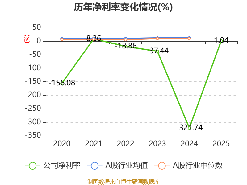 数据显示,2025年公司平均净资产收益率为-0.93%,较上年同期上升126.23个百分点。