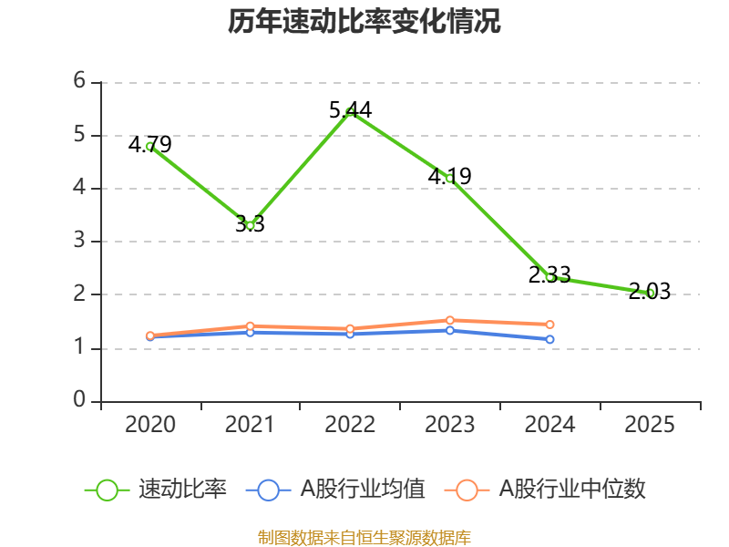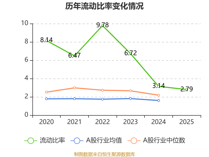 2025年,公司流动比率为2.79,速动比率为2.03。
