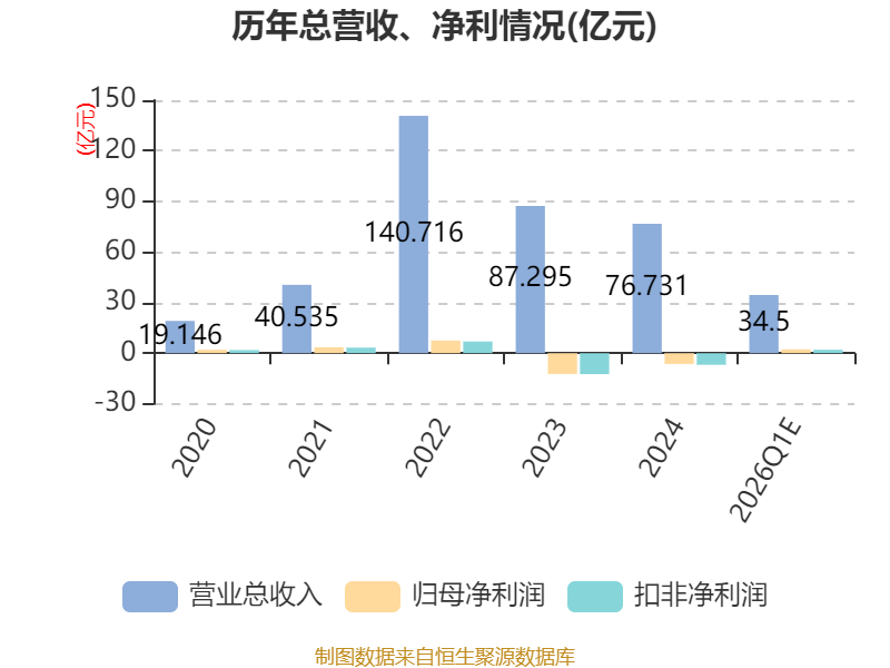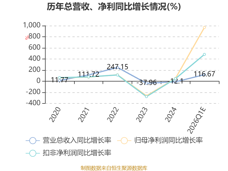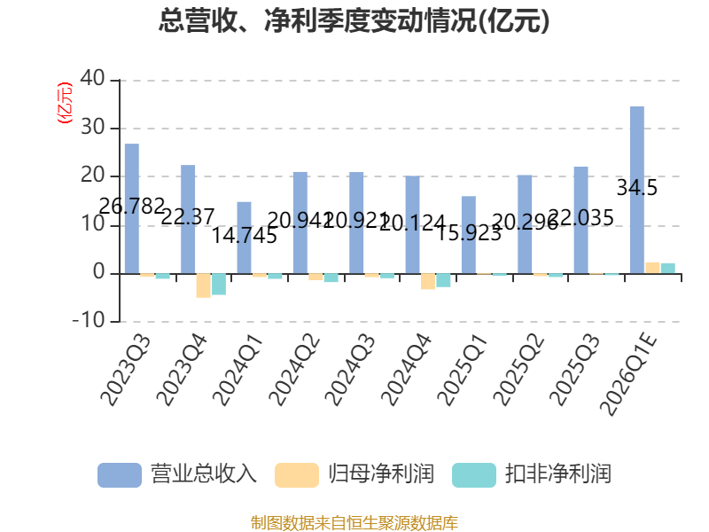 中证智能财讯龙蟠科技(603906)4月15日晚间披露业绩预告,预计2026年一季度实现营业收入33亿元至36亿元,同比增长107.25%-126.09%;归母净利润2亿元至2.5亿元,上年同期亏损2594.88万元;扣非净利润预计1.8亿元至2.3亿元,上年同期亏损5368.61万元。以最新收盘价计算,市净率(LF)约5.52倍,市销率(TTM)约4.52倍。