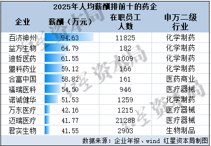 A股药企哪家人均薪酬最高?