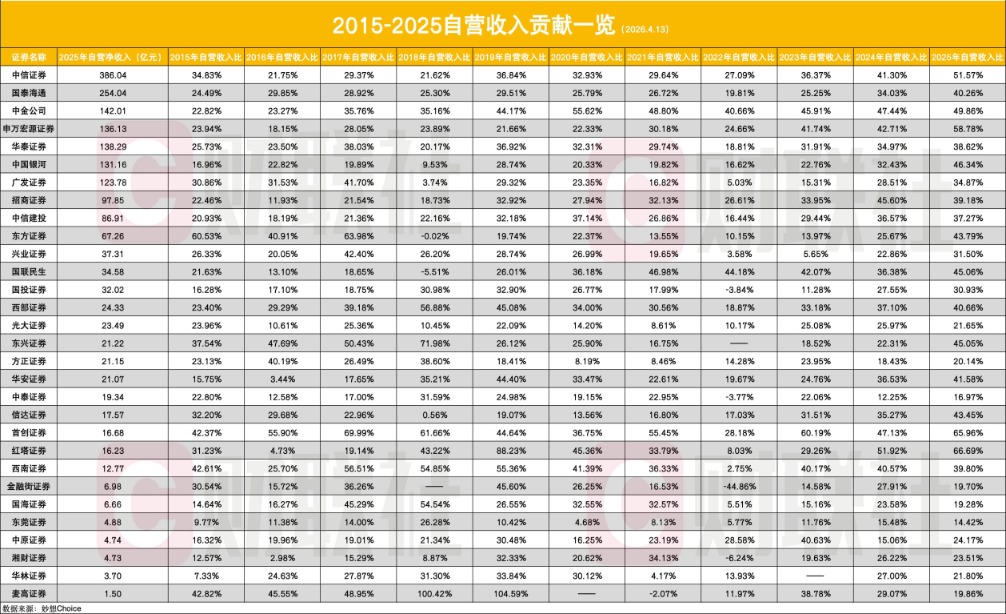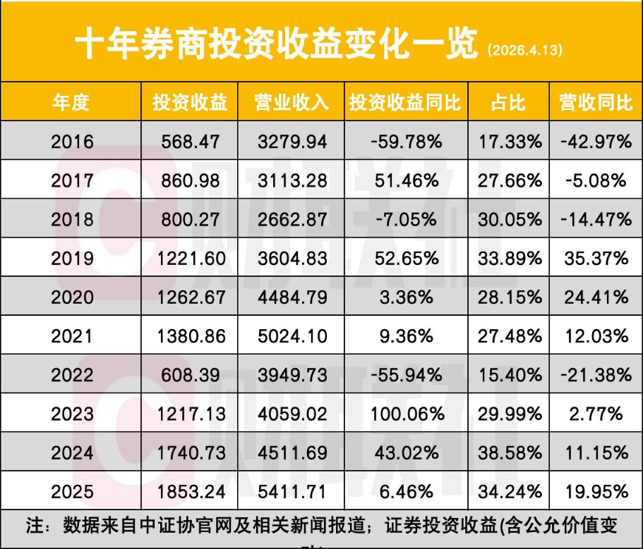 过去十年,证券业最显著的结构性变革,莫过于收入结构的根本性重构,自营业务从“配角”逆袭为“主角”,成为行业营收的压舱石。
