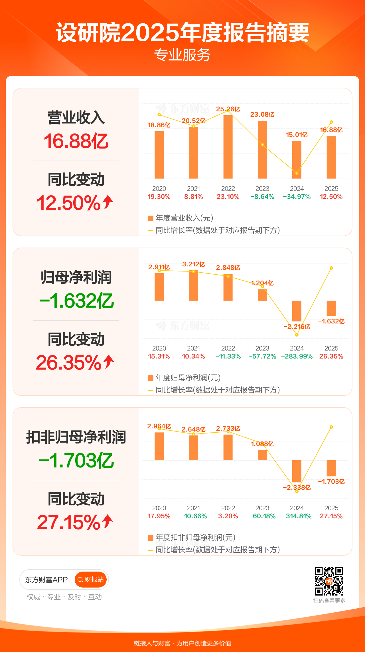 设研院4月16日发布2025年年报显示,公司全年实现营业收入16.88亿元,同比增长12.50%;归母净利润-1.63亿元;扣非归母净利润-1.70亿元。