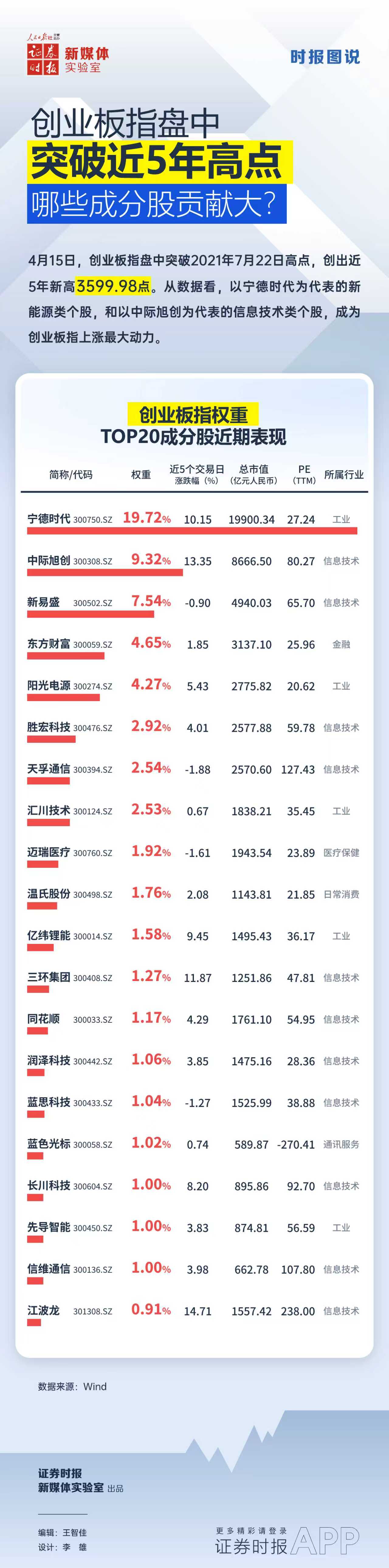 原标题:时报图说丨创业板指盘中突破近5年高点,哪些成份股贡献大?