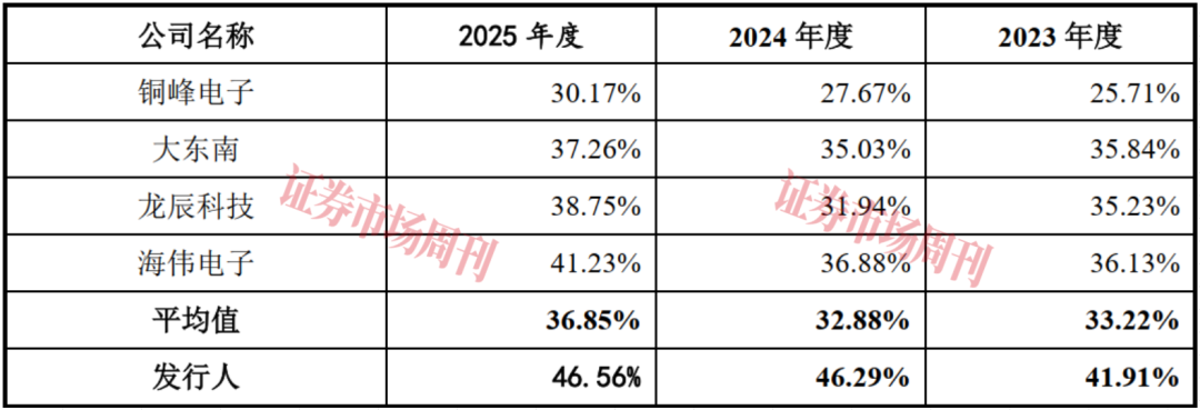 值得指出的是,2023年至2025年,嘉德利的同行业可比公司相同或者相似业务的平均毛利率分别为33.22%、32.88%和36.85%,而嘉德利同期主营业务毛利率要明显高于同行业可比公司。