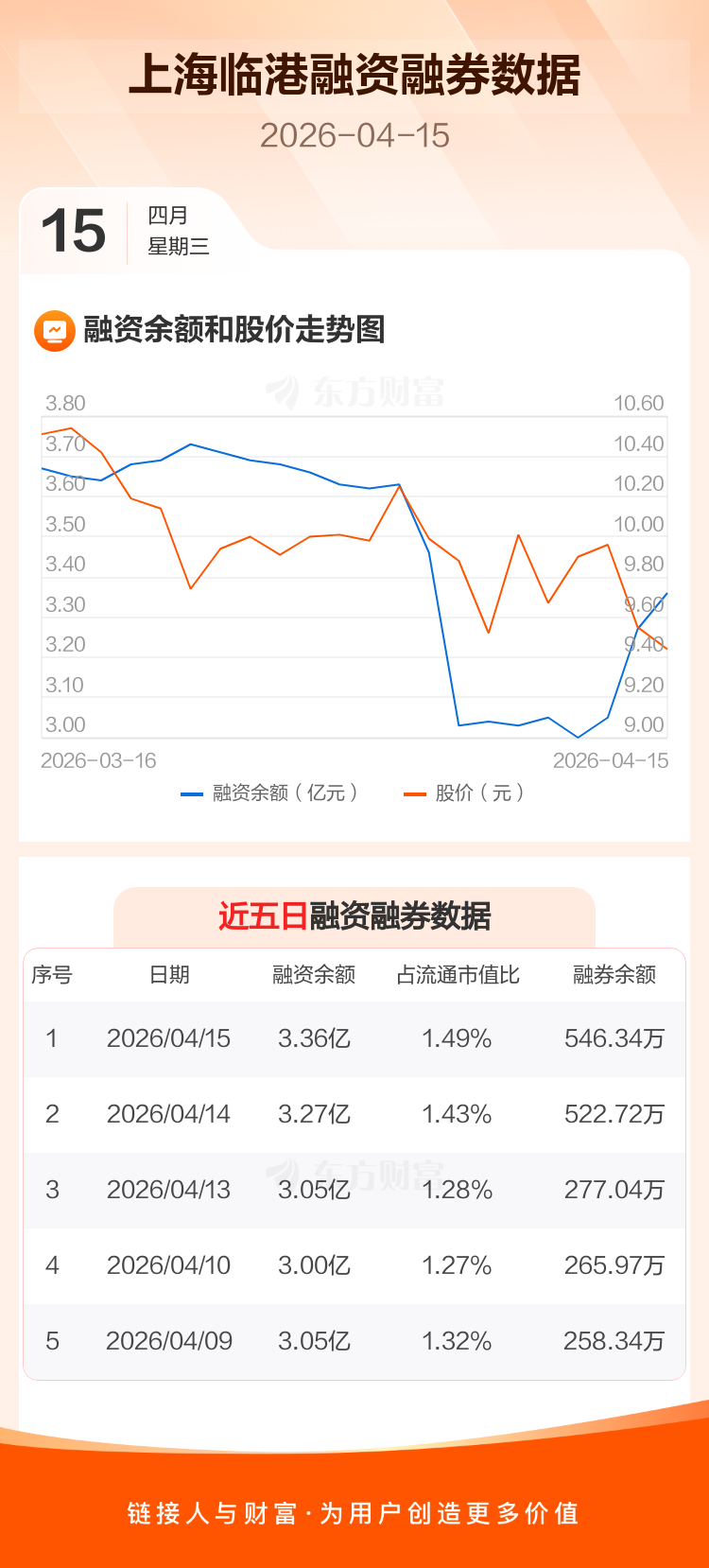 交易所最新数据显示,上海临港于2026年4月15日获融资买入2665.00万元,融资偿还1695.26万元,当日融资净买入969.74万元。目前,该股融资余额3.36亿,占流通市值比例为1.49%。