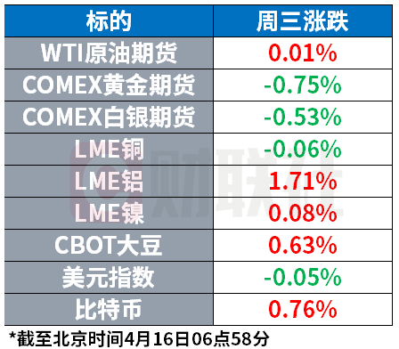 大宗商品方面乏善可陈。原油、黄金周三均未出现太大波动,美元指数连续第9个交易日下跌。在全球供应短缺的预期下,伦铝重回每吨3600美元上方。