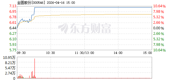 4月16日,金圆股份盘中涨幅达5%,截至9点55分,报6.83元,成交1.70亿元,换手率3.67%。