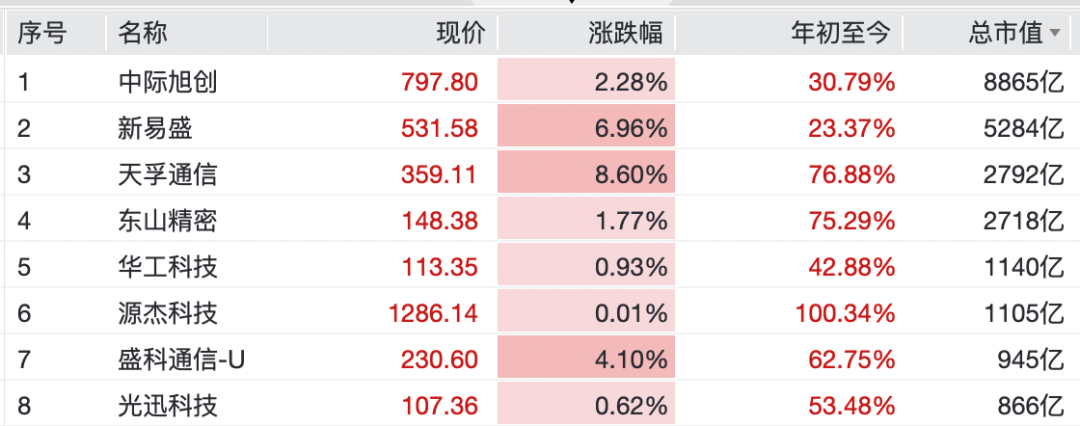 CPO板块强势拉升,“易中天”大涨:中际旭创涨2.28%,新易盛涨近7%,天孚通信涨8.6%。