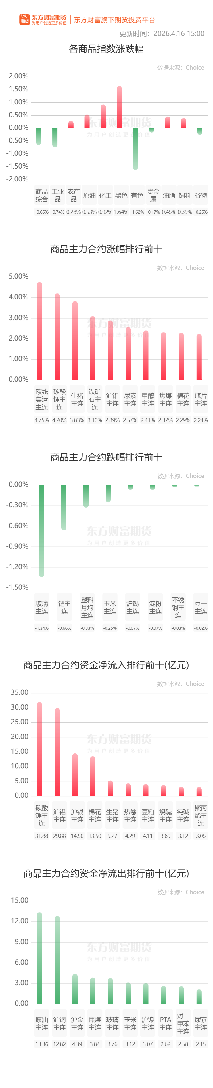 苹果:据Mysteel农产品数据显示,截至2026年4月15日,全国主产区苹果冷库库存量为351.93万吨,环比上周减少30.23万吨,同比去年走货速度下降。目前苹果市场呈现出旺季不旺的状态,随后期时令水果上市,压力有后置可能。(我的钢铁网)