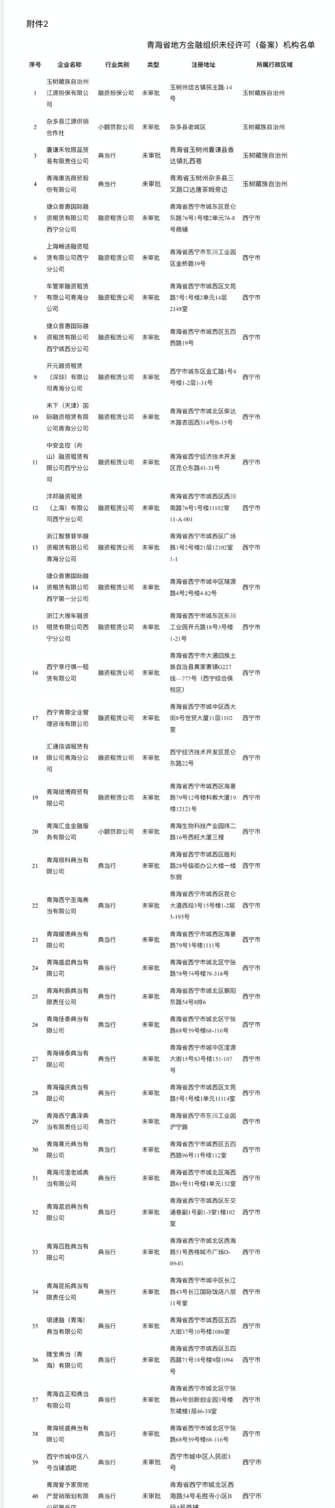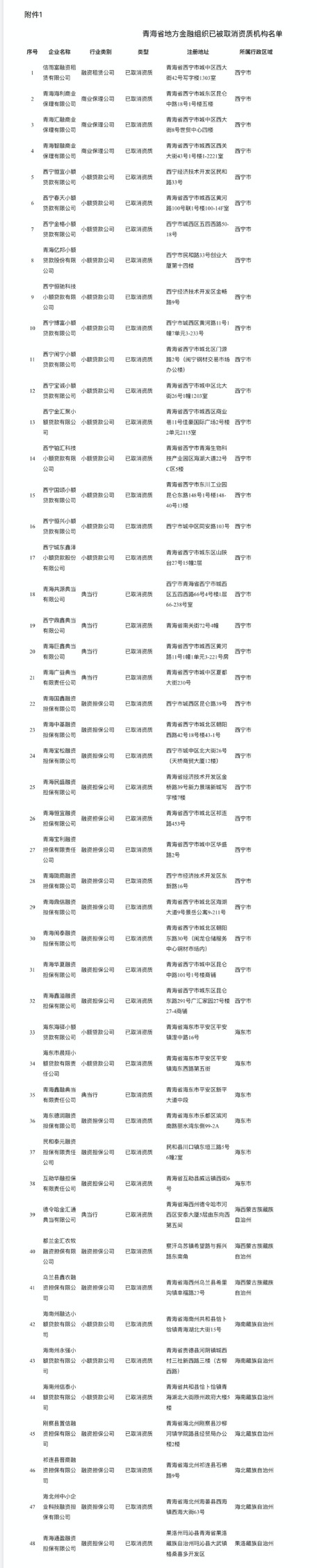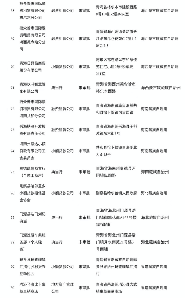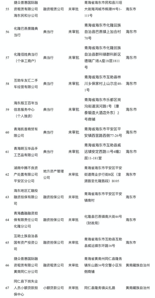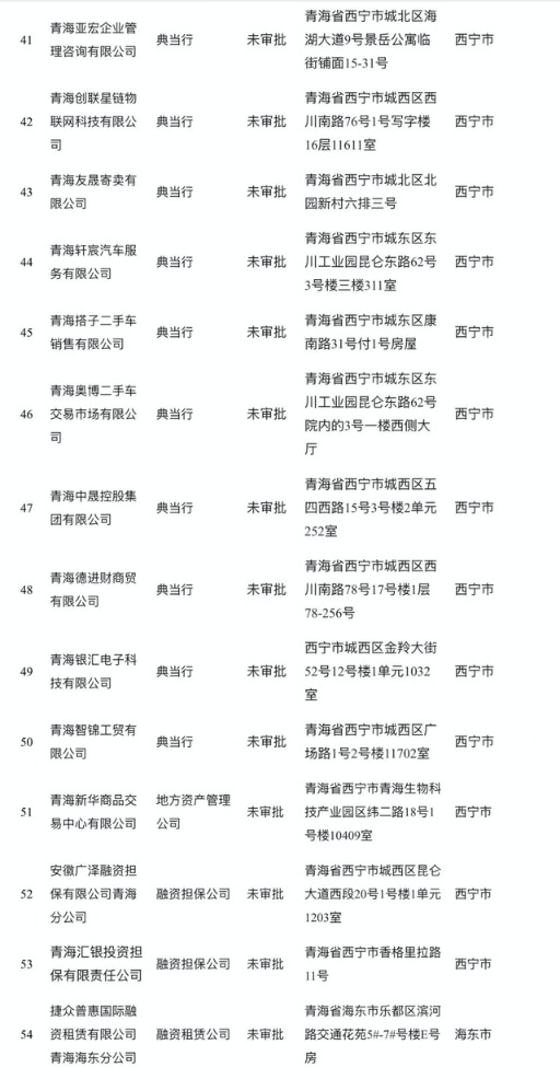 4月15日,青海省地方金融管理局发布《关于已被取消资质或未经许可(备案)在名称和经营范围中使用涉地方金融组织字样机构名单的公告》。