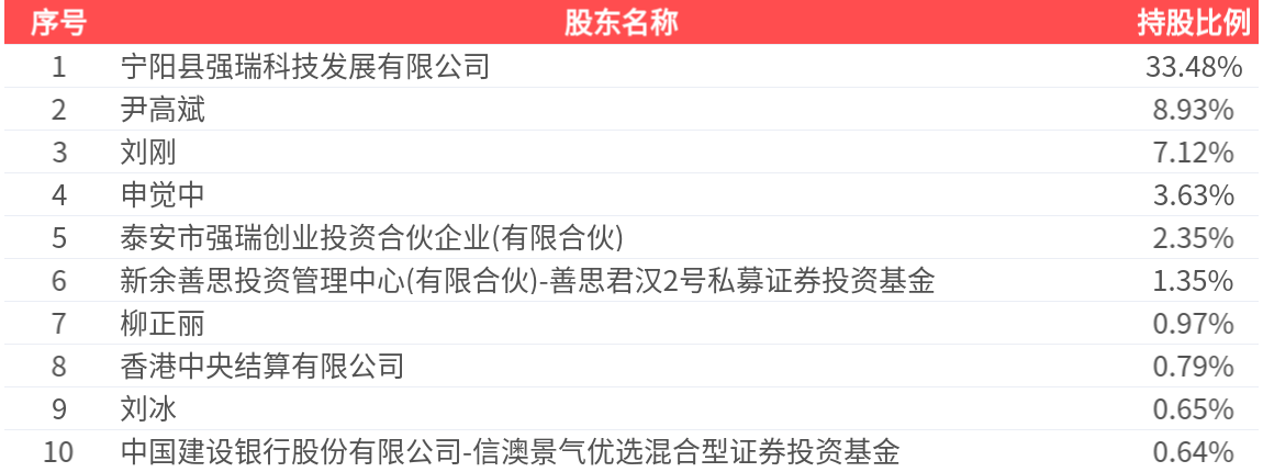 公司股东户数为1.77万户,前十大股东持股数量为6197.35万股,占总股本比例为59.91%,前十大股东持股情况如下:
