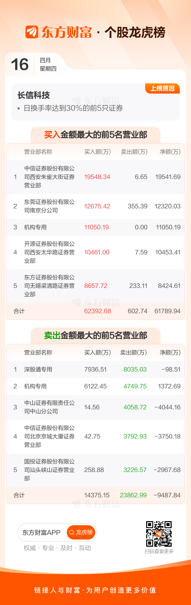 交易所2026年4月16日公布的交易公开信息显示,长信科技因成为日换手率达到30%的前5只证券上榜。长信科技当日收报7.77元,涨跌幅14.10%,偏离值30.35%,换手率30.35%,成交额58.11亿。