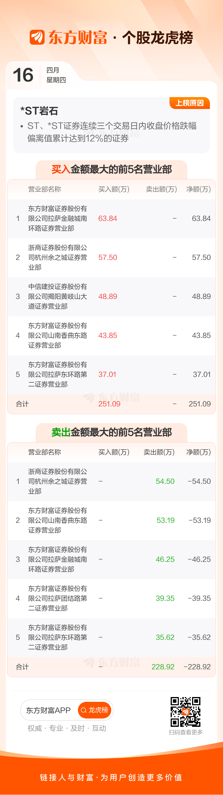 交易所2026年4月16日公布的交易公开信息显示,*ST岩石因成为ST、*ST证券连续三个交易日内收盘价格跌幅偏离值累计达到12%的证券上榜。*ST岩石当日收报1.03元,涨跌幅-4.63%,换手率0.88%,成交额303.70万。异常期间4月14日至4月16日,期间涨幅-14.17%,累计偏离值-15.84%,区间成交额1700.16万。