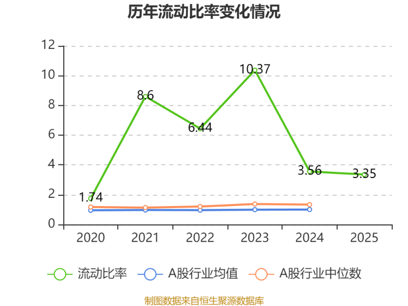 2025年,公司流动比率为3.35,速动比率为3.32。