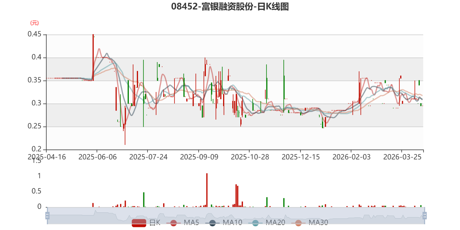 中证智能财讯富银融资股份(08452)4月16日披露2025年度报告。报告期内,公司实现营业收入7689万元,同比下降42.22%;归母净利润亏损4353.5万元,上年同期亏损687.3万元;经营活动产生的现金流量净额为64.1万元,上年同期为-3224.5万元;据报告显示,富银融资股份基本每股收益为-0.1212元,平均净资产收益率为-10.62%。