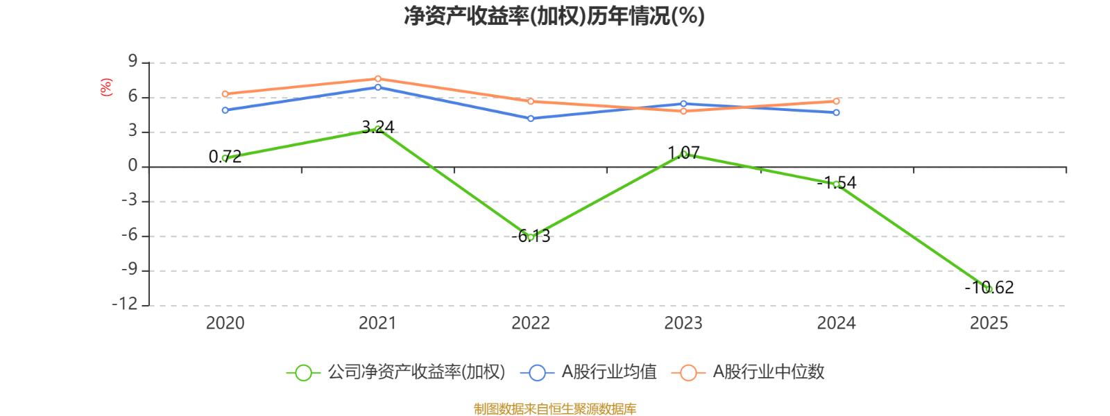 数据显示,2025年公司平均净资产收益率为-10.62%,较上年同期下降9.08个百分点。