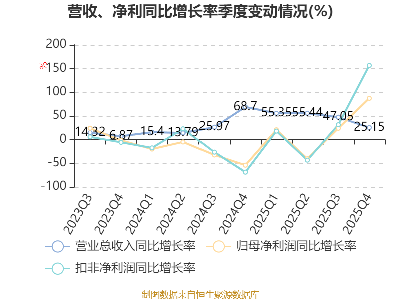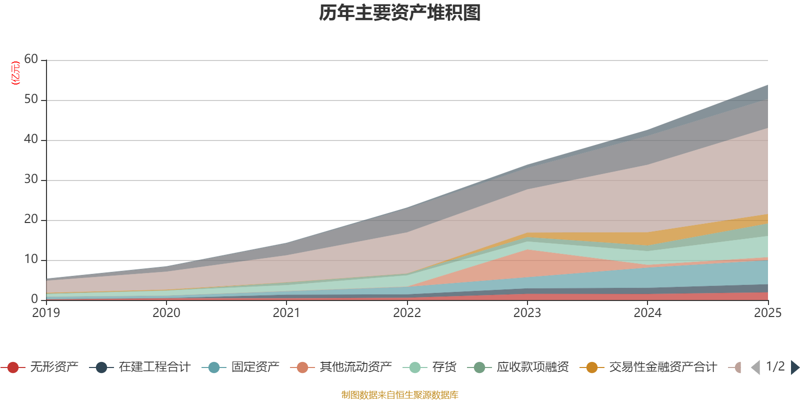 资产重大变化方面,截至2025年末,公司货币资金较上年末增加0.76%,占公司总资产比重下降3.45个百分点;交易性金融资产合计较上年末减少28.56%,占公司总资产比重下降3.39个百分点;应收款项融资较上年末增加122.49%,占公司总资产比重上升2.52个百分点;商誉较上年末增加608.98%,占公司总资产比重上升2.52个百分点。